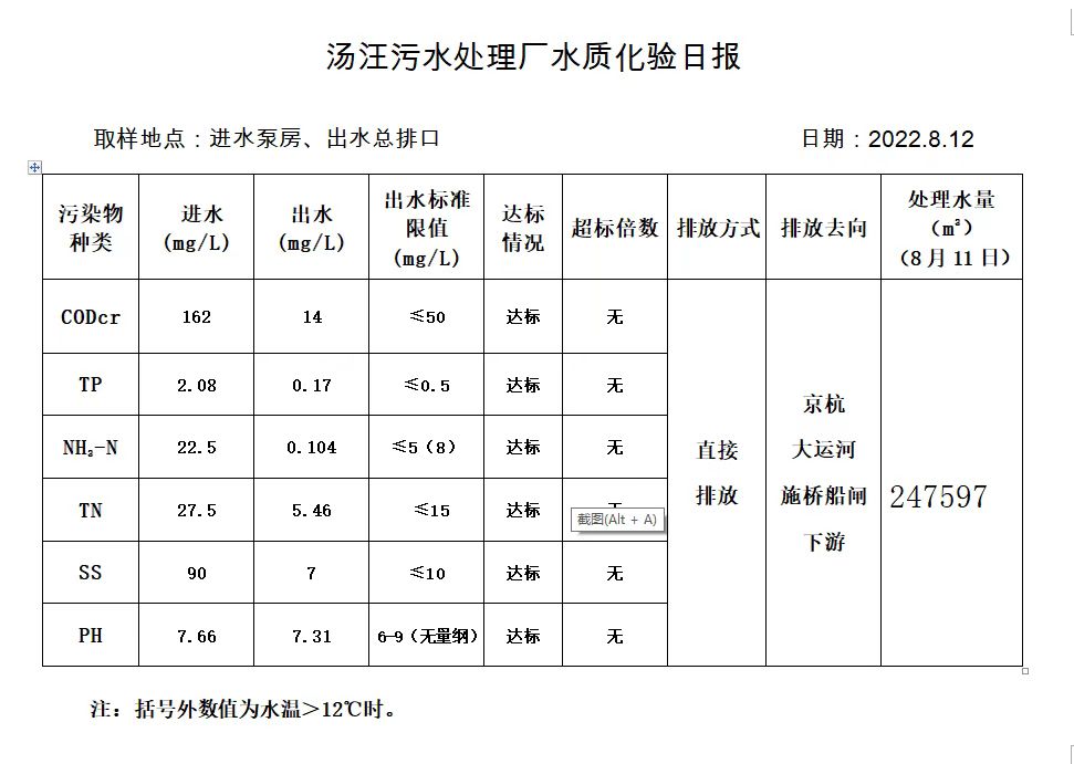 汤汪污水处理厂水质化验日报(2022.8.12)
