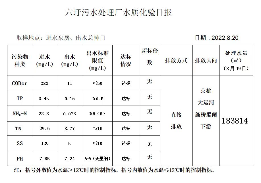 六圩污水处理厂水质化验日报(2022.8.20)