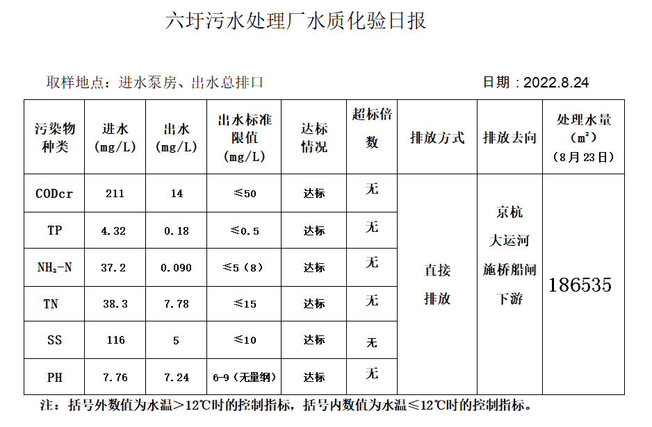 六圩污水处理厂水质化验日报(2022.8.24)