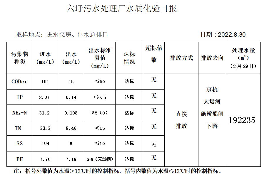 六圩污水处理厂水质化验日报(2022.8.30)