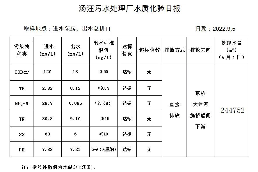 汤汪污水处理厂水质化验日报(2022.9.5)