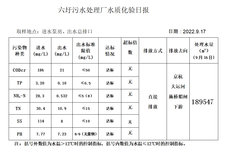 六圩污水处理厂水质化验日报(2022.9.17)