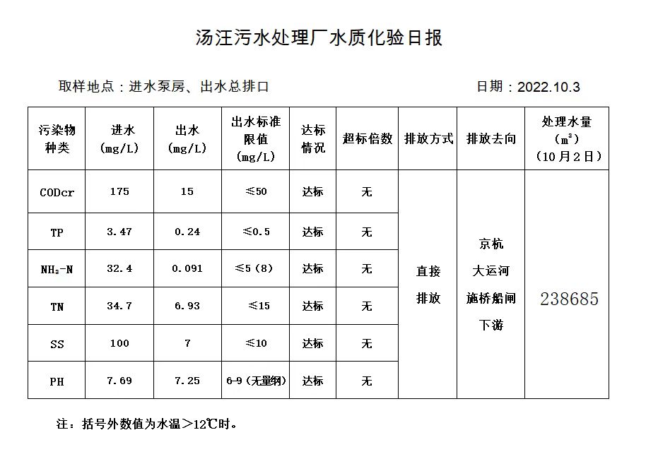 汤汪污水处理厂水质化验日报(2022.10.3)