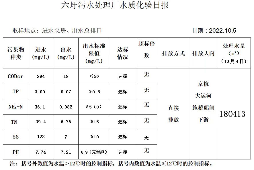 六圩污水处理厂水质化验日报(2022.10.5)