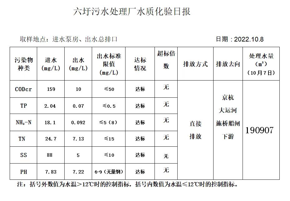 六圩污水处理厂水质化验日报(2022.10.8)