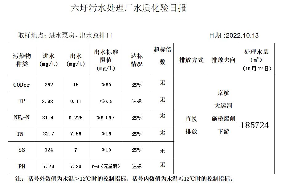 六圩污水处理厂水质化验日报(2022.10.13)