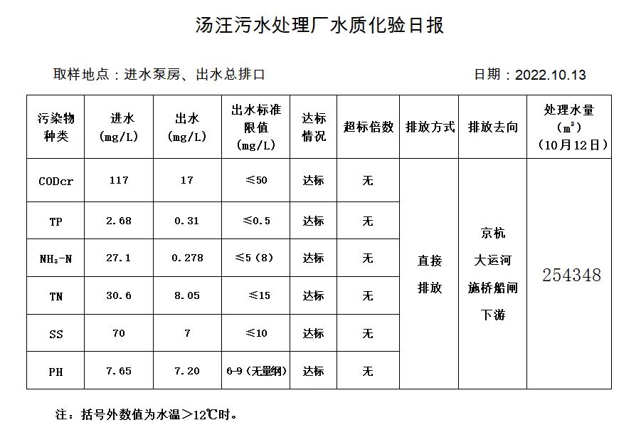 汤汪污水处理厂水质化验日报(2022.10.13)