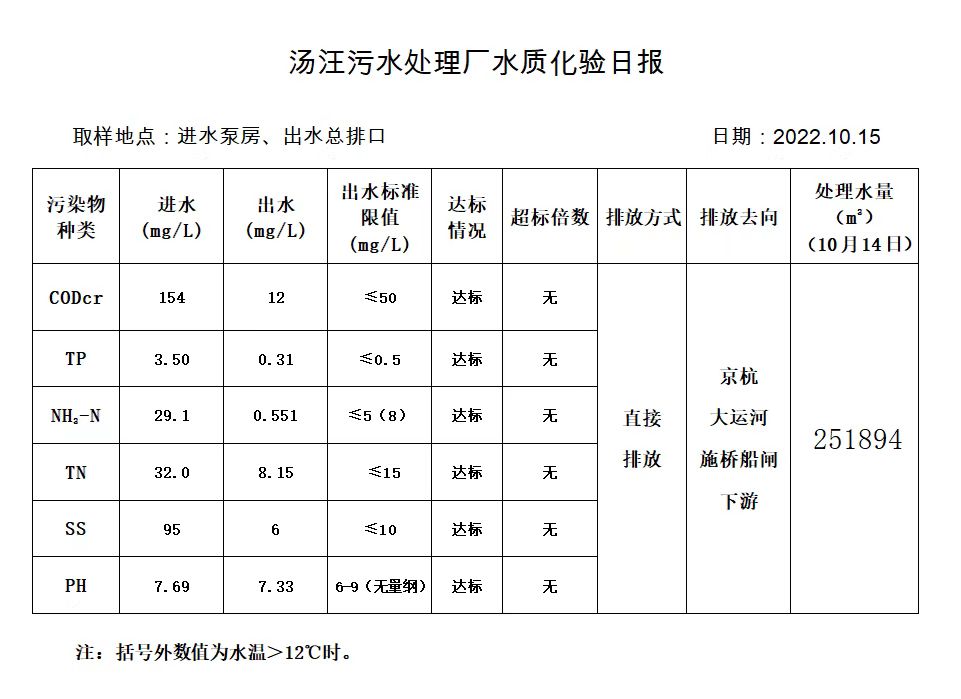 汤汪污水处理厂水质化验日报(2022.10.15)