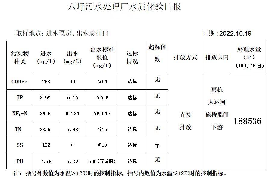 六圩污水处理厂水质化验日报(2022.10.19)