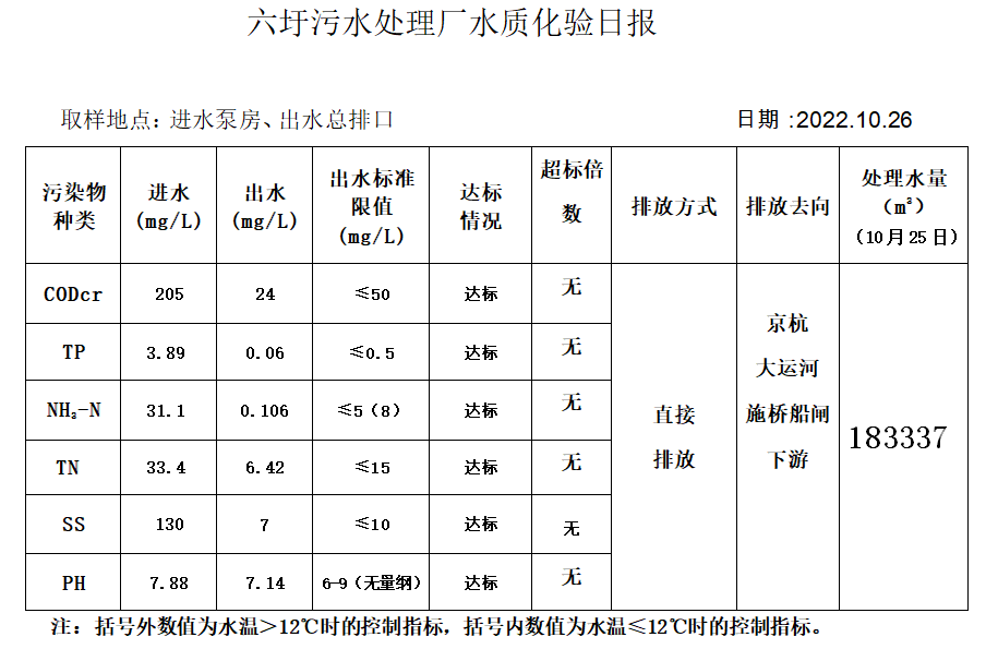 六圩污水处理厂水质化验日报(2022.10.26)
