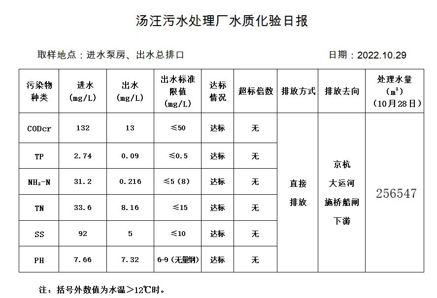 汤汪污水处理厂水质化验日报(2022.10.29)