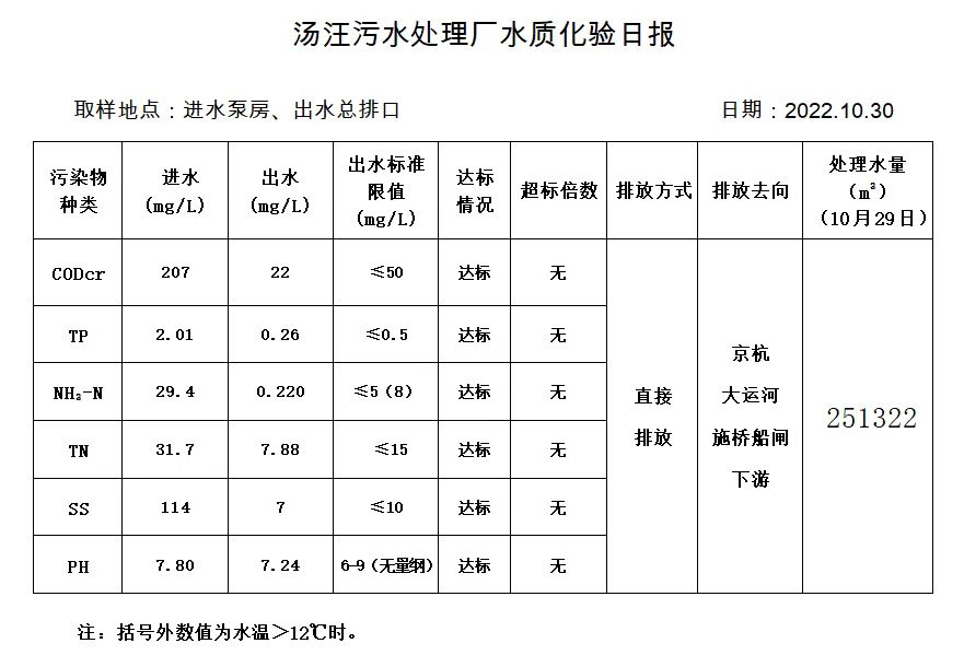 汤汪污水处理厂水质化验日报(2022.10.30)