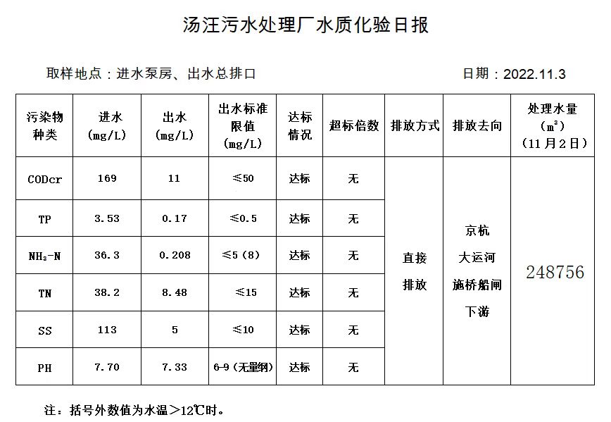 汤汪污水处理厂水质化验日报(2022.11.3)