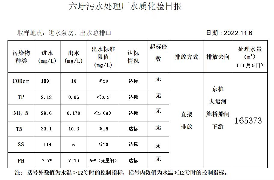 六圩污水处理厂水质化验日报(2022.11.6)