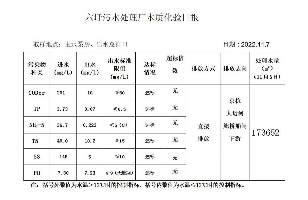 六圩污水处理厂水质化验日报(2022.11.7)