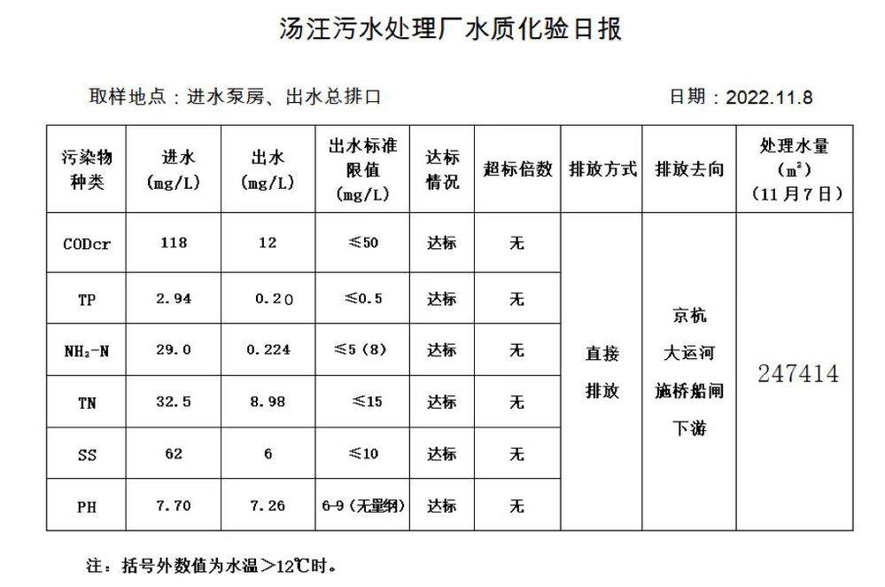 汤汪污水处理厂水质化验日报(2022.11.8)