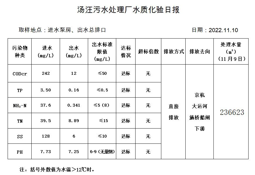 汤汪污水处理厂水质化验日报(2022.11.10)