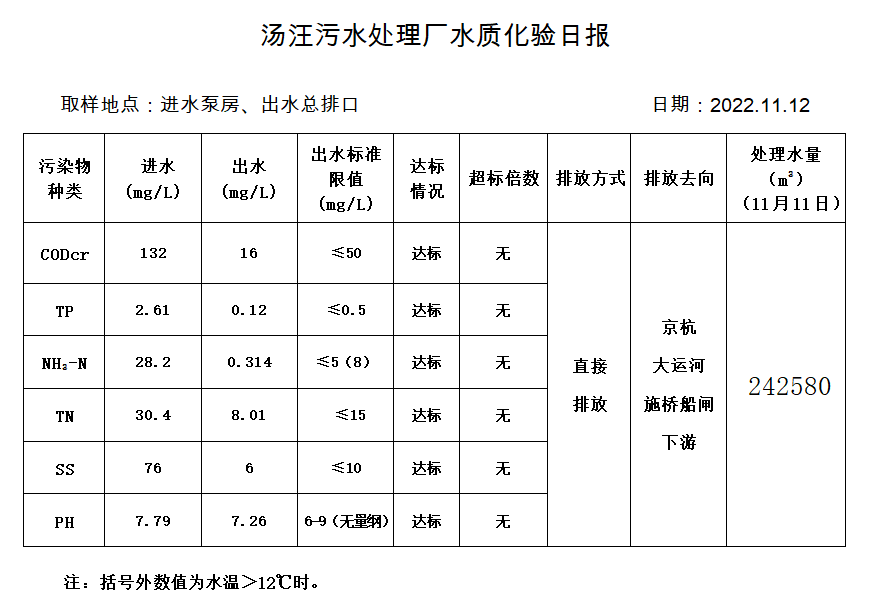 汤汪污水处理厂水质化验日报(2022.11.12)