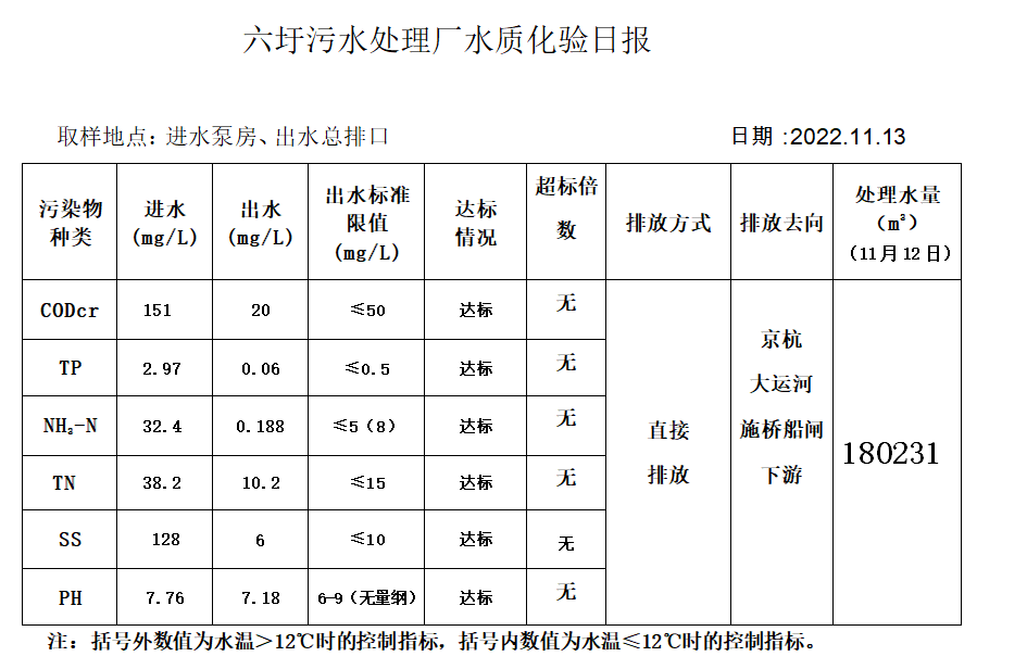 六圩污水处理厂水质化验日报(2022.11.13)
