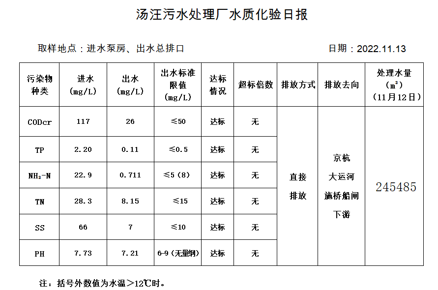 汤汪污水处理厂水质化验日报(2022.11.13)