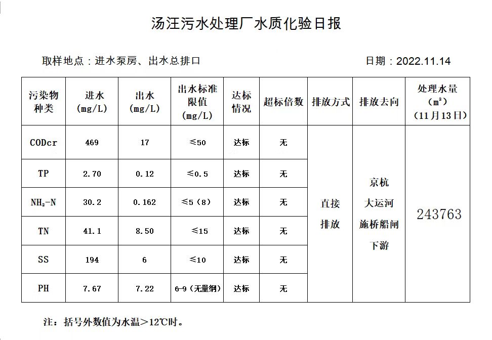 汤汪污水处理厂水质化验日报(2022.11.14)