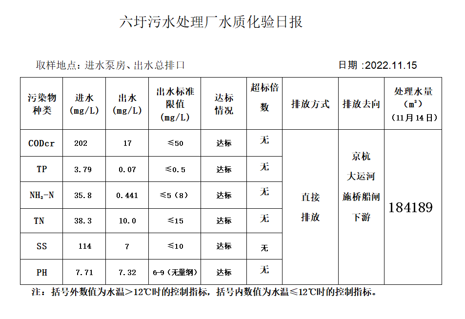 六圩污水处理厂水质化验日报(2022.11.15)
