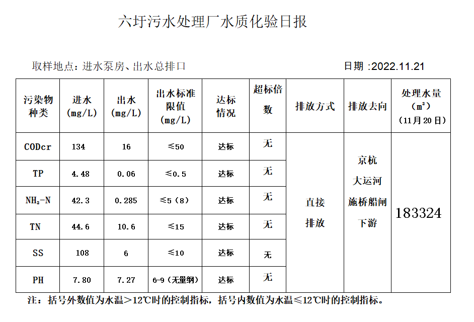 六圩污水处理厂水质化验日报(2022.11.21)
