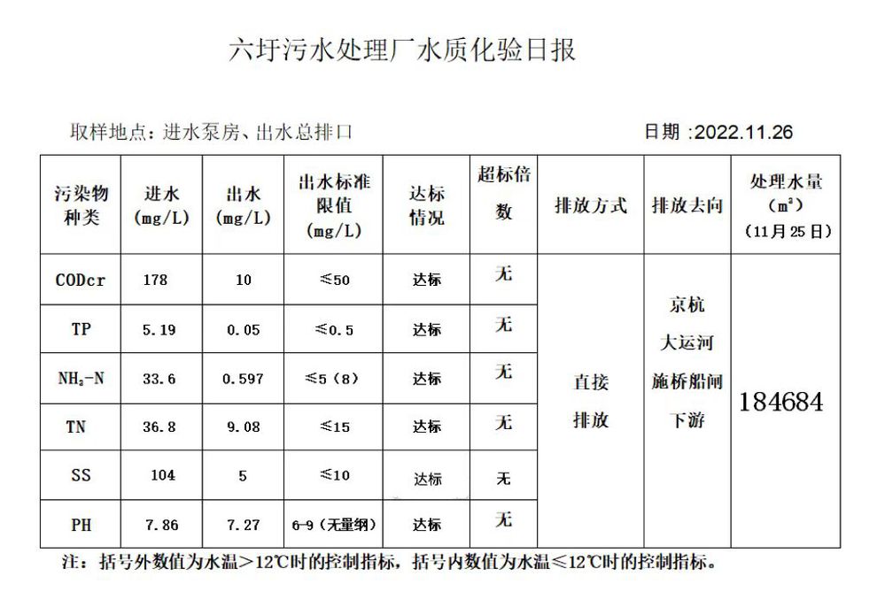 六圩污水处理厂水质化验日报(2022.11.26)