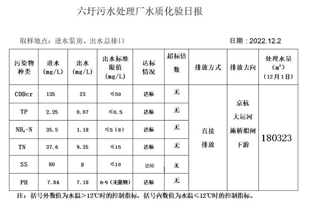 六圩污水处理厂水质化验日报(2022.12.2)