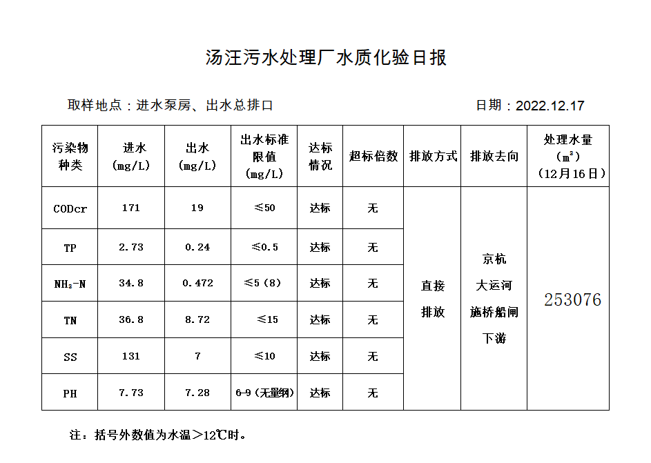 汤汪污水处理厂水质化验日报(2022.12.17)