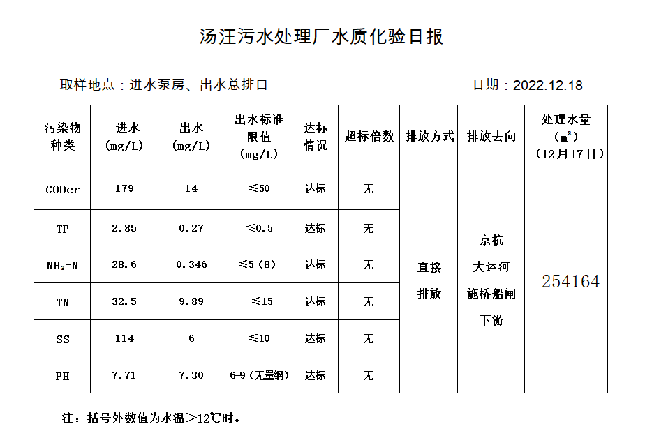汤汪污水处理厂水质化验日报(2022.12.18)