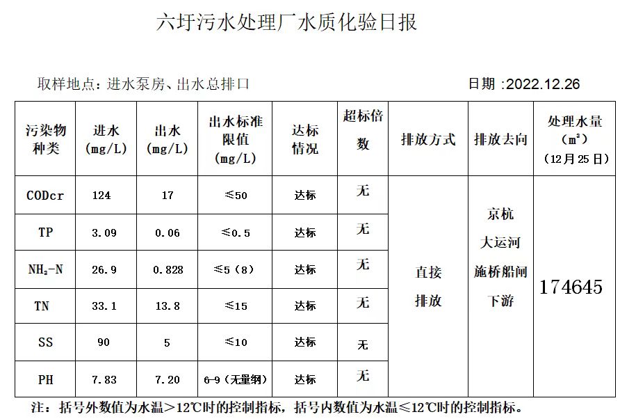 六圩污水处理厂水质化验日报(2022.12.26)