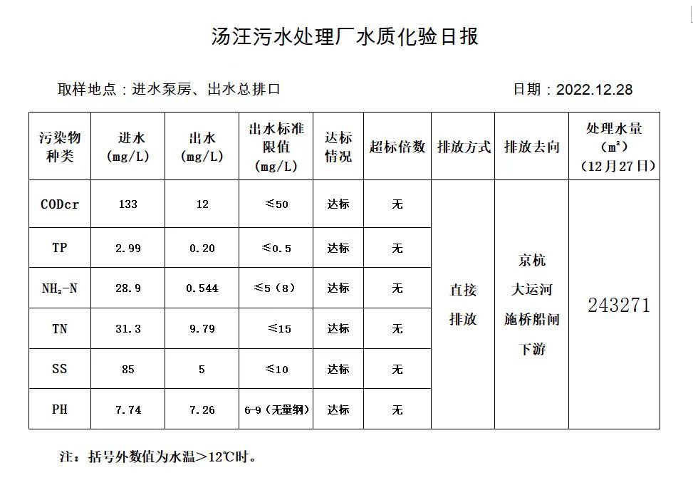 汤汪污水处理厂水质化验日报(2022.12.28)