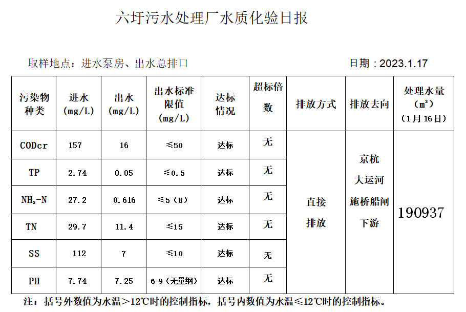 六圩污水处理厂水质化验日报(2023.1.17)