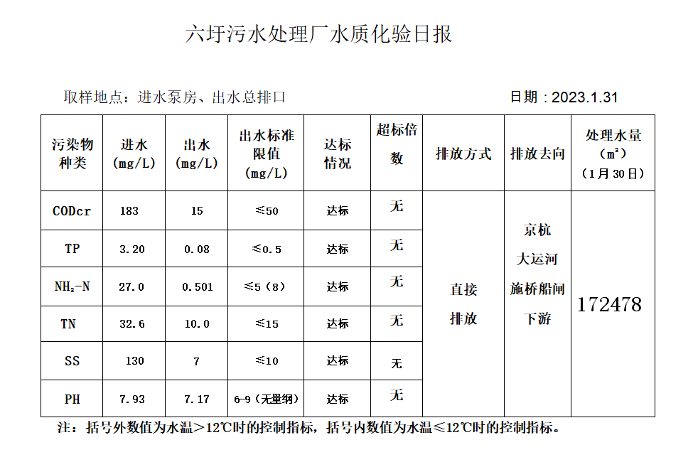 六圩污水处理厂水质化验日报(2023.1.31)