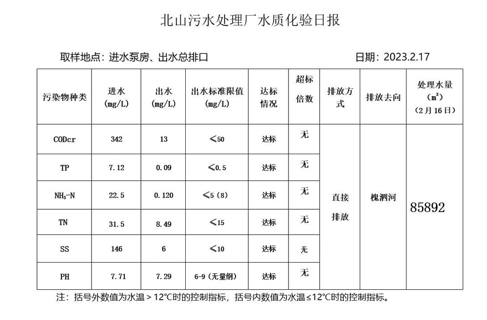 北山污水处理厂水质化验日报(2023.2.17)