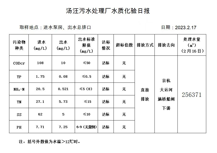 汤汪污水处理厂水质化验日报(2023.2.17)