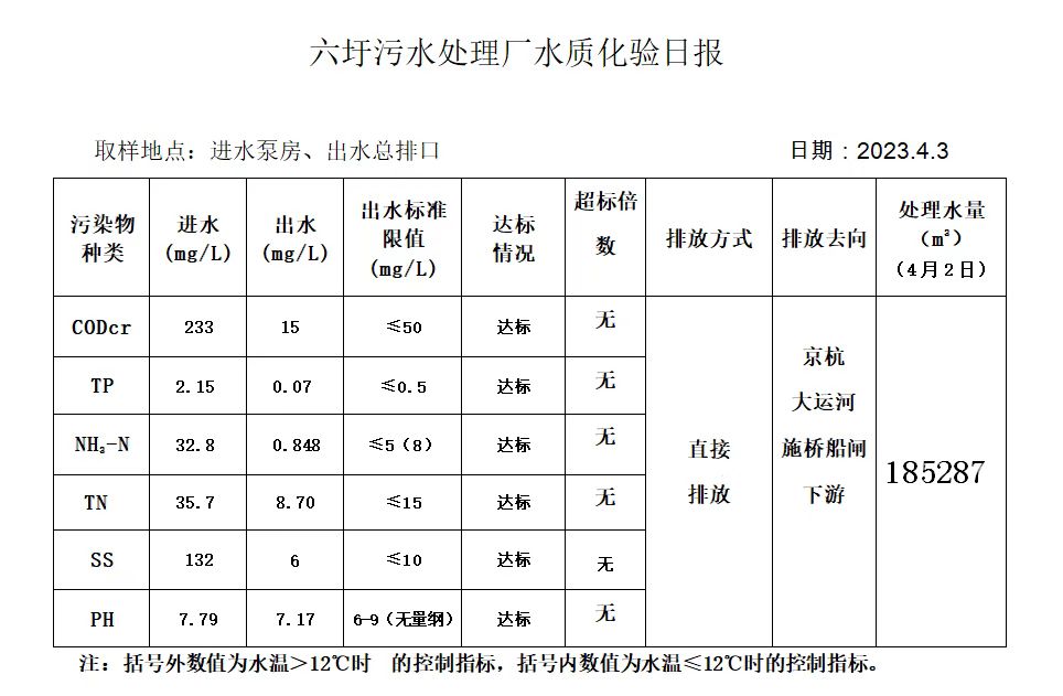 六圩污水处理厂水质化验日报(2023.4.3)