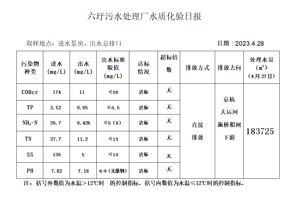 六圩污水处理厂水质化验日报(2023.4.28)