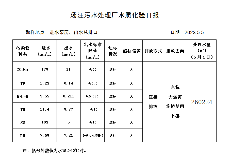 汤汪污水处理厂水质化验日报(2023.5.5)