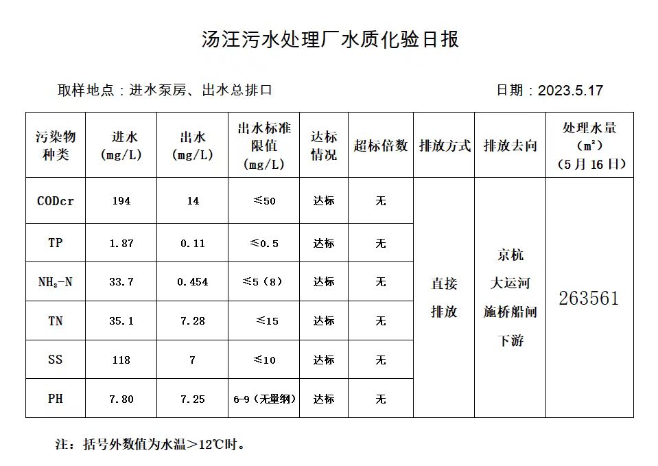 汤汪污水处理厂水质化验日报(2023.5.17)