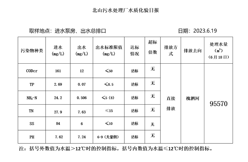 北山污水处理厂水质化验日报(2023.6.19)