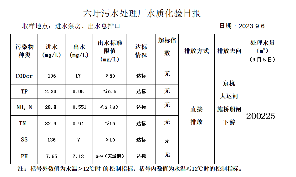 六圩污水处理厂水质化验日报(2023.9.6)