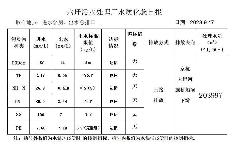 六圩污水处理厂水质化验日报(2023.9.17)