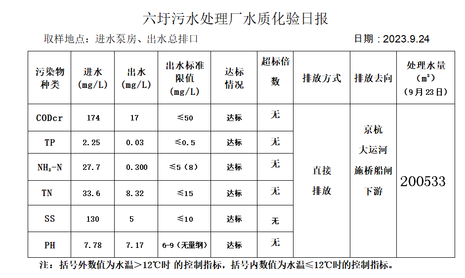 六圩污水处理厂水质化验日报(2023.9.24)