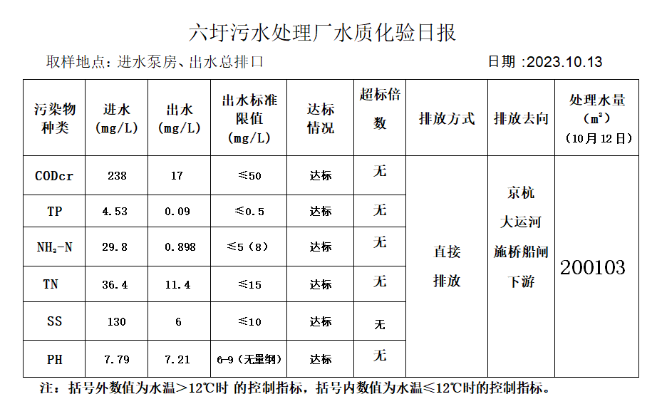 六圩污水处理厂水质化验日报(2023.10.13)