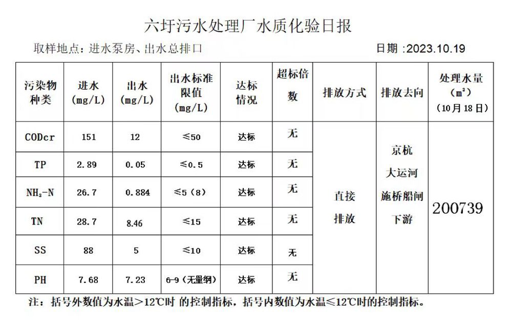 六圩污水处理厂水质化验日报(2023.10.19)