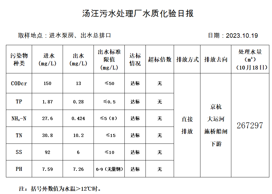 汤汪污水处理厂水质化验日报(2023.10.19)