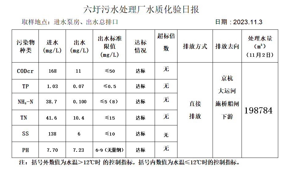 六圩污水处理厂水质化验日报(2023.11.3)