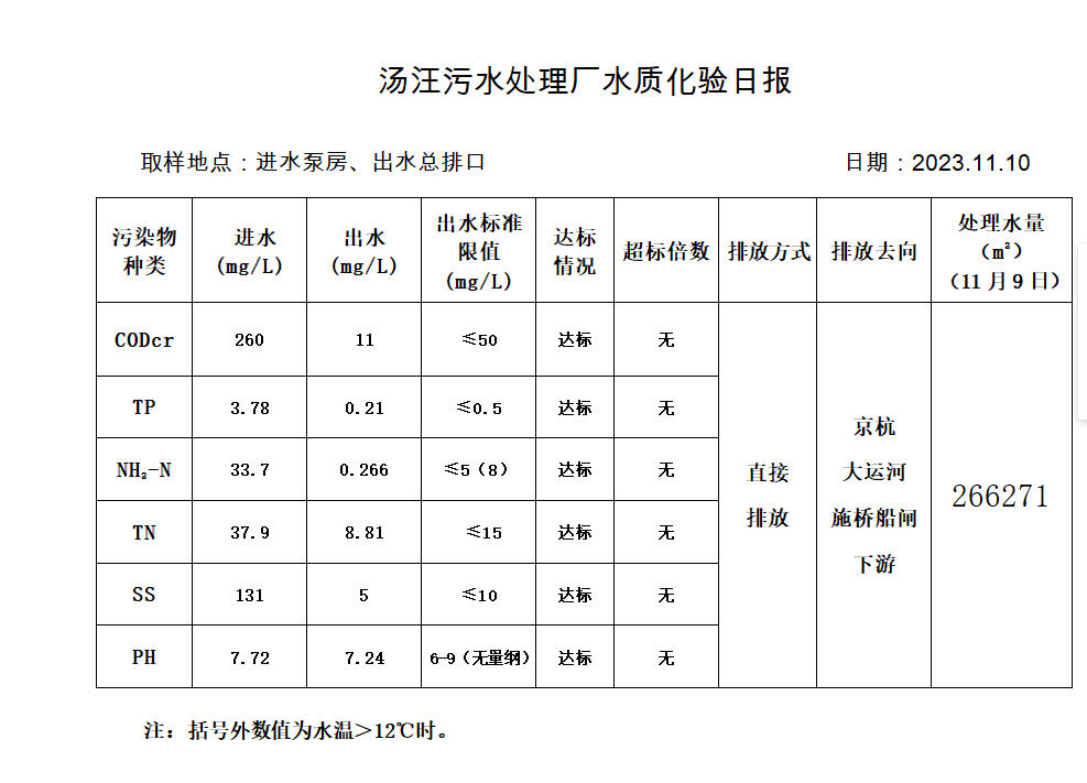 汤汪污水处理厂水质化验日报(2023.11.10)